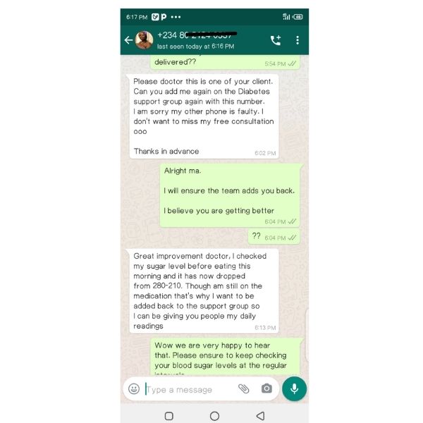 Folake Bamigboye Times used to be very Challenging, I had the worst days of my life living with diabetes, I appreciate you so much Dr Asam, You have restored me my life that was lost already . Thank you so much for helping me out of my diabetes with your natural Herbs.