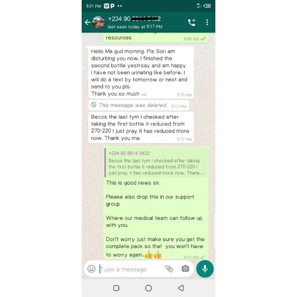 Try this product today! if you do not see any changes in your blood sugar level and if the condition is not completely resolved or you're not completely satisfied with your purchase, simply let us know within 90 days and we'll give you a full refund by either calling this no. 07041840599 or send an email to support@revivehub.com.ng No questions asked.